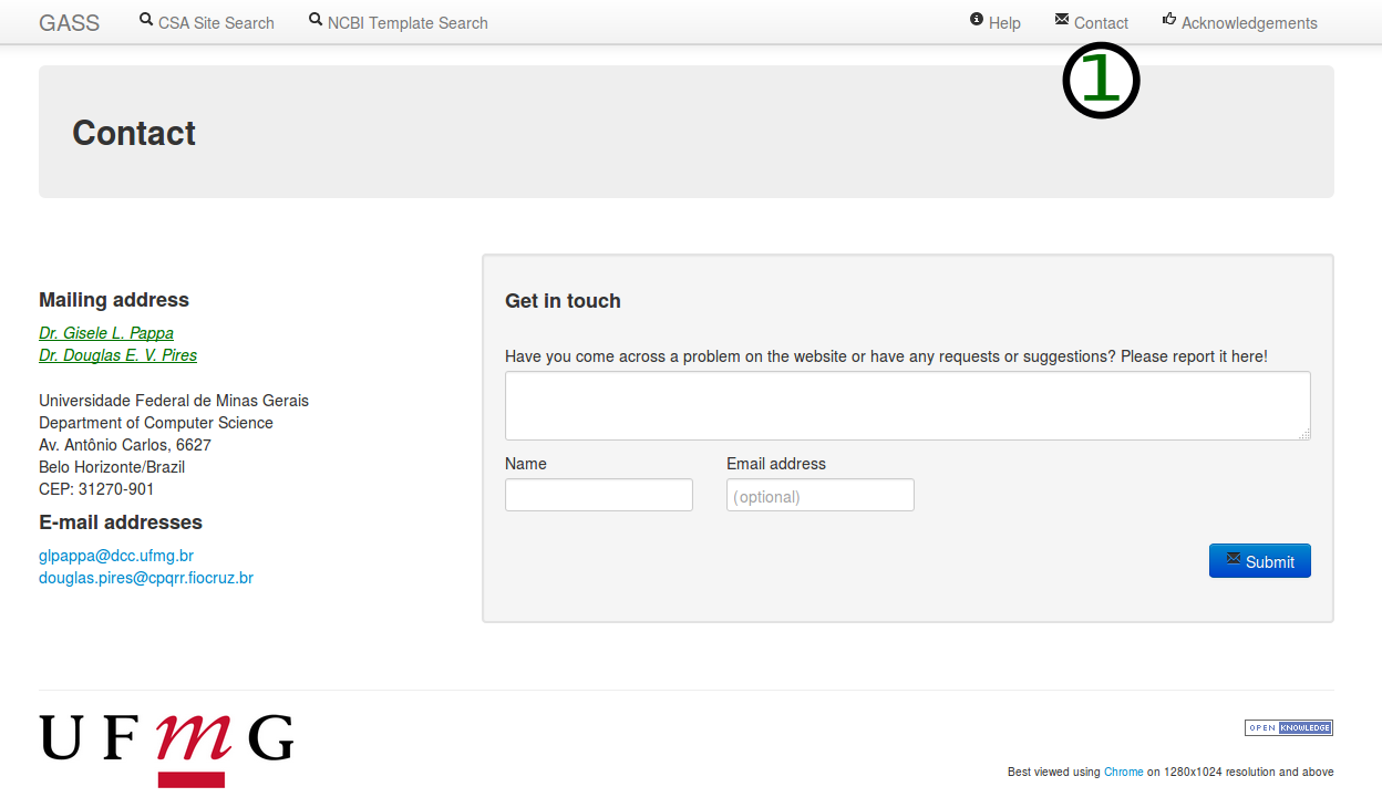 In case you experience any trouble using GASS-WEB or have any suggestions or comments, please do not hesitate in contacting us (1) either via e-mail or through the online form.